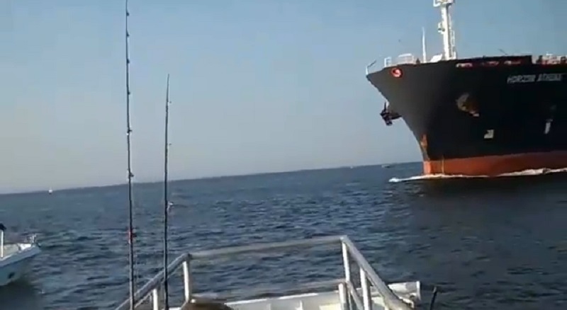टैंकर के साथ थोड़ा टक्कर के लिए एक छोटी सी नाव से बचा जाता है