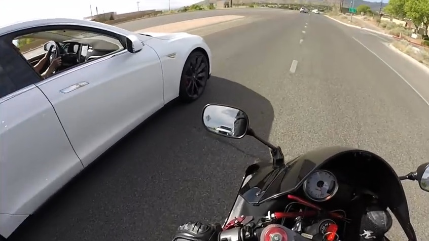 मोटर साइकिल बनाम टेस्ला मॉडल एस