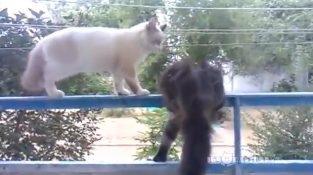 एक औरत उसके फोन पर एक app का उपयोग करने का प्रयास करता है, जो म्याऊ के लिए मानव भाषा का अनुवाद करने के लिए supposed है. बिल्ली दृष्टिकोण होगा चिढ़ और हमला करेंगे.