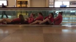 एक तैराकी टीम हवाई अड्डे पर