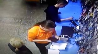 रूस में एक इलेक्ट्रॉनिक्स की दुकान में, एक युवा रखता है कैंची की एक जोड़ी में एक सॉकेट बिजली पट्टी. प्राकृतिक चयन के रूप में यह चाहिए काम नहीं किया, एक बार और.