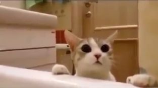 यह बिल्ली विशेष रूप से चिंतित हो जाती है जब उसे पता चलता है कि उसका मालिक स्नान के 'शैतानी' पानी में खो गया है, और हर तरह से कोशिश करता है को बचाने के लिए.