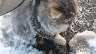 बर्फ में फंस गया था एक बिल्ली में मदद
