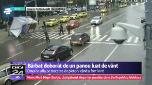 नवंबर 13, वर्ष 2016. यह रोमानिया में एक दिन हवा है, और तेज हवा एक बड़े बोर्ड सड़क पहले से न सोचा पैदल चलने वालों पर निर्देश.