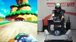 टोक्यो, जापान में साइट मनोरंजन VR जोन शिन्जुकु पर, एक जवान एक emulator कार पर मारियो Kart वीडियो खेल खेल आदमी और एक आभासी वास्तविकता हेलमेट पहने हुए.