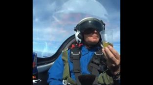 एक पायलट एक आविष्कारशील रास्ता उसके गिलास को भरने के लिए पता चलता है, विमान घूमता है के रूप में.