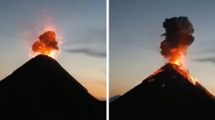 वॉलकन del Fuego के ग्वाटेमाला रिकॉर्ड प्रभावशाली विस्फोट में पैदल यात्रियों.