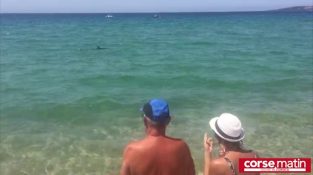 एक शार्क कोर्सिका में एक समुद्र तट तक पहुँच जाता है