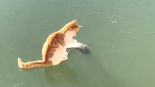 बिल्ली और जमे हुए मछली