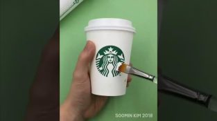 स्टारबक्स कॉफी का एक गिलास के साथ, एक जापानी व्यक्ति फिल्म 'माई नेबर टोटोरो' के पात्रों की 3डी पेंटिंग बनाता है.