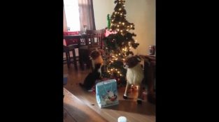 ड्रोन वीडियो शुक्रवार को जारी, यह बाहर फांसी और कमचटका के रूसी क्षेत्र में Ust-Kamchatsk में गांव के करीब एक भालू परिवार के साथ खेल एक कुत्ते से पता चलता.