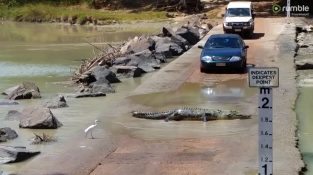 मगरमच्छ यातायात सड़क पार करने में व्यवधान