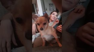 एक आदमी farting द्वारा अपने chichuahua Herbet डराता है.
