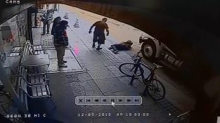 मैन आनेवाला ट्रक के सामने यादृच्छिक passerby धक्का
