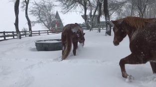 टेनेसी में, एक चरवाहा Sheepdogs में से तीन में सीटी के साथ आदेशों देता है, किसी विशेष पथ में पांच बतख नेतृत्व करने के लिए.