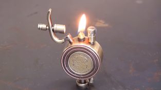 मशीन हमारे Parkhin रोमन एक पीतल के निर्माण लाइटर से पता चलता, जो एक सिक्के के साथ सजाया गया 100 दिरहकमी.