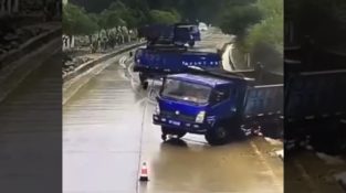 तीन ट्रक एक गीला सड़क पर उच्च गति से आगे बढ़ ड्राइवरों, अचानक अचानक उनके सामने करती देखकर ब्रेक होगा. तीन वैन लगभग एक नृत्य में भाग लेने के तरह सिंक्रनाइज़ घूमना होगा.जब.