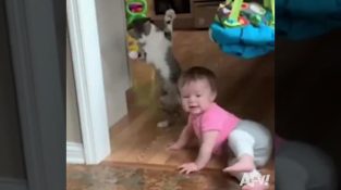 बिल्ली घर में जल्दी से चलाता है, जब उसकी मुलाकात अचानक एक डरावने बच्चे से होती है...