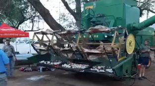 दक्षिण अफ्रीका में एक किसान का विचार अपने थ्रेशर को एक विशाल ग्रिल में बदलना.