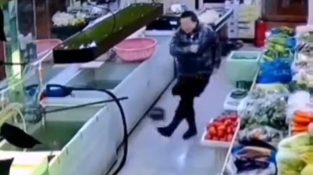 चीन के एक स्टोर में, एक सेल्सवुमन एक मछली लेने आती है जिसने अपने टैंक से भागने की कोशिश की थी. यह मछली को लात मारेगा और यह सीधे टैंक के पानी में वापस आ जाएगी.