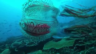 महान गहराई की सबसे असामान्य और खौफनाक जेलीफ़िश में से एक है Chirodectes maculatus, जो पहली बार वीडियो पर रिकॉर्ड किया गया था.