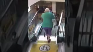 सुपरमार्केट ट्रॉली ले जाने की कोशिश करते समय एक बुजुर्ग महिला एस्केलेटर से गिर गई.
