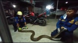 इंडोनेशिया के क्रमात जाति क्षेत्र में, एक घर की छत में छिपे एक बड़े अजगर को निकालने के लिए दमकल को बुलाया गया.