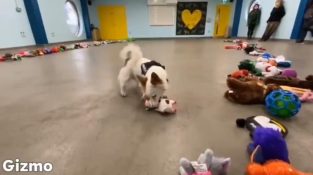 आयरलैंड में, बचाव कुत्तों को कुत्ते के खिलौनों से भरे कमरे से अपना क्रिसमस उपहार चुनने का अवसर मिला.