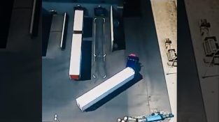 एक ट्रक चालक अपने ट्रेलर को पार्किंग में कुशलता से पार्क करता है.