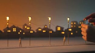 जापानी कंपनी कंदेंको का एक बहुत ही मूल विज्ञापन, जो बिजली की आपूर्ति के बुनियादी ढांचे और बिजली नेटवर्क का निर्माण करता है.