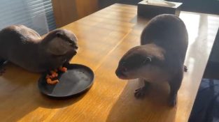 कोटारो और हाना, जापान में रहने वाले दो घरेलू ऊदबिलाव, लव सामन. हर बार उनके मालिक सामन लाते हैं, वे इस बात पर लड़ते हैं कि सबसे ज्यादा कौन खाएगा.