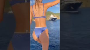 एक नौका पर कुछ शैंपेन पीने के बाद, एक महिला समुद्र में डुबकी लगाने की कोशिश करेगी.