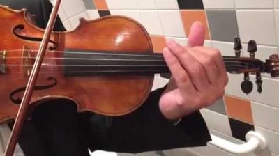 Egy hegedűs utánozza a motorkerékpár hegedűvel.