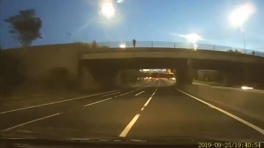 Közel Leeds, Anglia és ahogy mozog az autópályán, egy pilóta elfogadja a kő szélvédő dobott egy eszméletlen egy hídon.