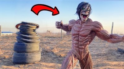 Eren Jaeger a Attack on the Titans régi gumikból.