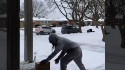 Egy férfi társaival egy autóban, csomagot próbál eltulajdonítani egy ház ajtajából az Egyesült Államokban. A tulajdonos, aki abban a pillanatban látta a történteket, automata fegyverrel jön ki.
