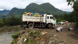 Egy karámban, egy öreg autót összenyomnak, mint a papírt, mielőtt újrahasznosításba kerül.