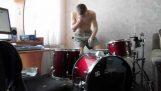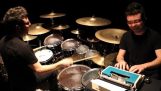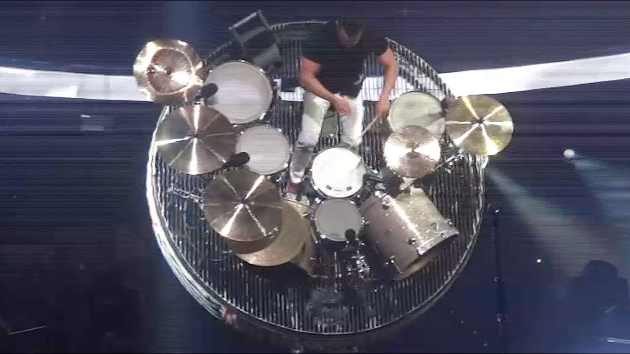 Ο Duncan Phillips, az ausztrál Newsboys együttes dobosa, 90 fokkal megdönthető és forgó emelvényen dobol.