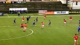 A labda valószínűtlen pályát vesz fel, és a hálóban köt ki, miután elkerget egy védőt, a belga 4. osztály mérkőzésén.