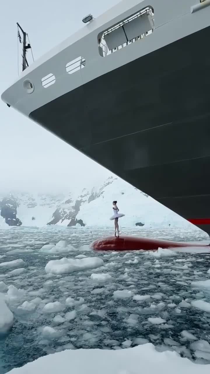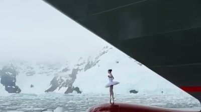 Victoria Dauberville francia balerina előadása egy jégtörő orrában az Antarktiszon