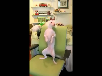 Egy kutya viszkető úgy dönt, hogy vissza a lekapart 'tánc'-a egy szék.