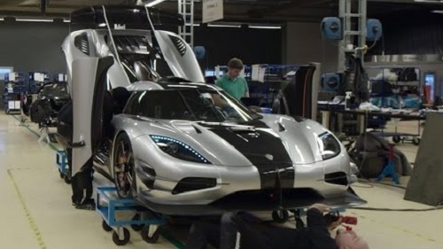 A Christian von Koenigsegg felügyeli a Koenigsegg szuperautó egy végső elkészítése:1, előtt a Genfi Autószalon. H svéd:Az 1 az eredeti súlymegtakarítási módszerekkel 1 lóerőt ér el minden 1 kg súlyra.