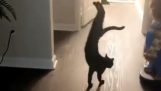 Egy kislány teszi néhány nagy bukfencet és pörög a levegőben.