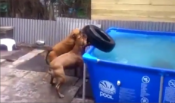 Két Bulldog, a bandita és a Shiva, Mi bemutatják a hatalom a csapatmunka, mint ők megpróbál-hoz csinál egy gumiabroncs keresztül a medence.