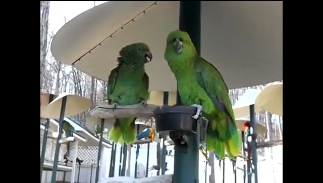Egzotikus madár papagáj Park hegyi, Tennessee, Amerikai EGYESÜLT Államok, két papagáj veszekszik a nagyon vicces módon, utánzó humán hangok.