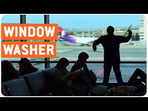 Néha unatkozni a munkában úgy gondolja, a különböző módon, hogy telik az idõ. Ez ablak mosó úgy dönt, hogy gyakorlatban a ninja készségek, míg ő tisztítja.