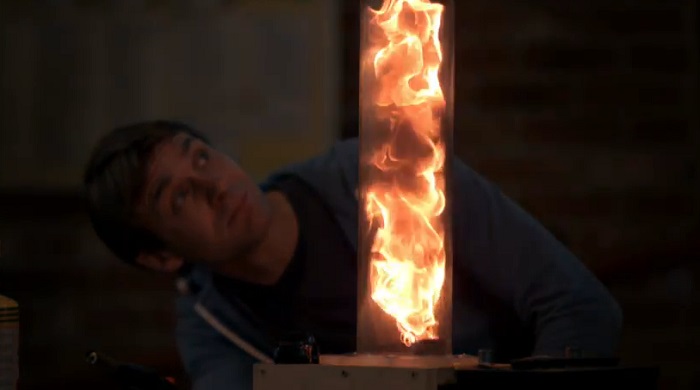 Jem Stansfield mérnök rámutat arra, hogy a különbség a benzin és a dízelüzemanyagok egy robbanásveszélyes módja. Részlet a BBC „Bang Goes Theory” című sorozatából..
