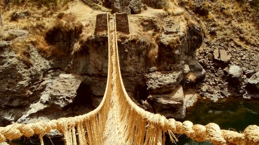 Körülbelül 300 évvel ezelőtt megjelent felfüggesztés híd Európában, Az inkák volt a hálózat több mint 200-an mind az Andokban, Ez segített, hogy mozogni a hatalmas számok-ból emberek, áru és katonák egész birodalmuk. Bár a legtöbb ezek a hidak most megsemmisítik., 500 évvel később egy híd Inca marad, Köszönhetően két közösségek, akik minden évben visszaad használ a régi módon, az építési.