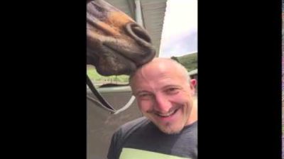 Az ember kap egy fej masszázs, egyenesen a ló ’ s száj.