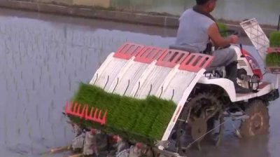 Ez az, hogy a japán termelők telepítési rizs, az elmúlt években, a modern automatizált gépek Ültető gépek.